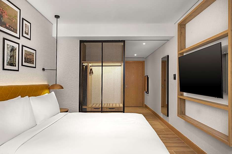 The spacious triple room provides air conditioning, soundproof walls, as well as a private bathroom featuring a shower and a hairdryer. The triple room offers a flat-screen TV, a wardrobe, a safe deposit box, a sofa as well as city views. The unit offers 2 beds.